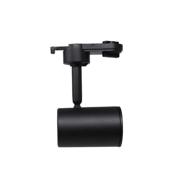 Foco de carril monofásico de color Negro para bombillas de rosca GU10. Está fabricado en Aluminio. Fácil de instalar.