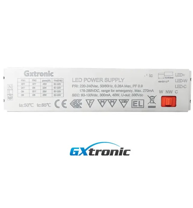 Incorpora un driver GXtronic de alto rendimiento y diodos SMD2835 OSRAM CHIP con una eficiencia luminosa de 140 lm/W, asegurando una iluminación potente y estable con un factor de potencia superior a 0.9. Su sistema multiselectable de potencia (20W / 30W / 35W / 40W) y su tecnología 3CCT (3000K / 4000K / 6000K) permiten ajustar tanto la intensidad como la temperatura de color según las necesidades del espacio o del proyecto.