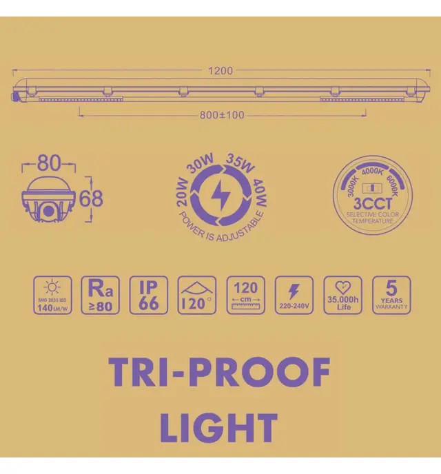 Pantalla Estanca LED 40W GXtronic 120CM |SMD2835 OSRAM CHIP 3CCT | IP66
