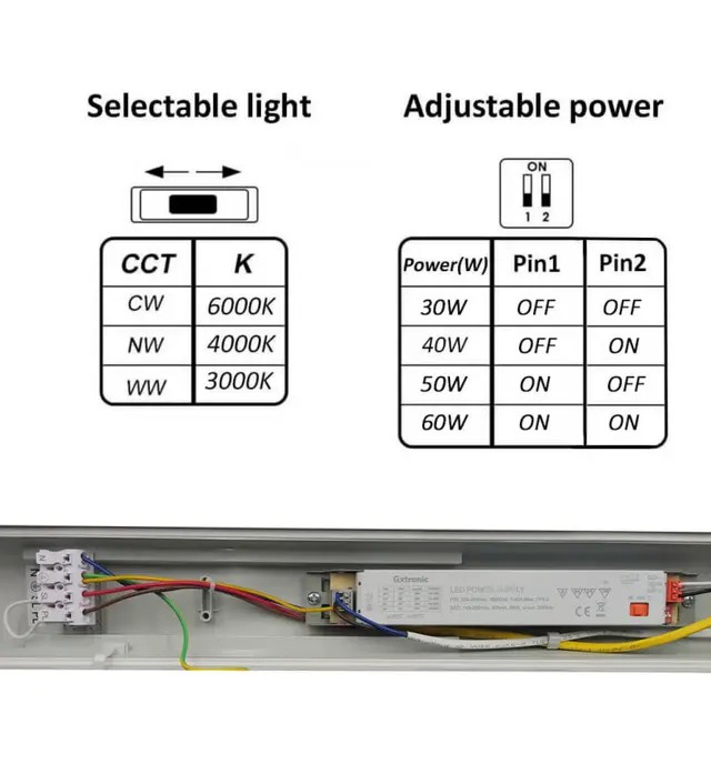 Incorpora un driver GXtronic de alto rendimiento y diodos SMD2835 OSRAM CHIP con una eficiencia luminosa de 140 lm/W, asegurando una iluminación potente y estable con un factor de potencia superior a 0.9. Su sistema multiselectable de potencia (30W / 40W / 50W / 60W) y su tecnología 3CCT (3000K / 4000K / 6000K) permiten ajustar tanto la intensidad como la temperatura de color según las necesidades del espacio o del proyecto.