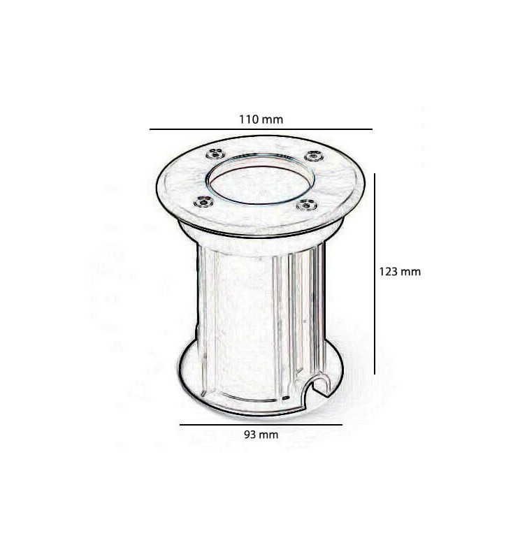 Carcaça IP65 embutida no chão. Graças aos 4 parafusos que tem na parte superior, podemos acessar o interior para instalar um dicroico com bucha GU10. Não hesite, compre este item na nossa loja online e complete a sua instalação visitando a nossa DICHROICS A altura máxima do dicroico GU10 é de 58mm.